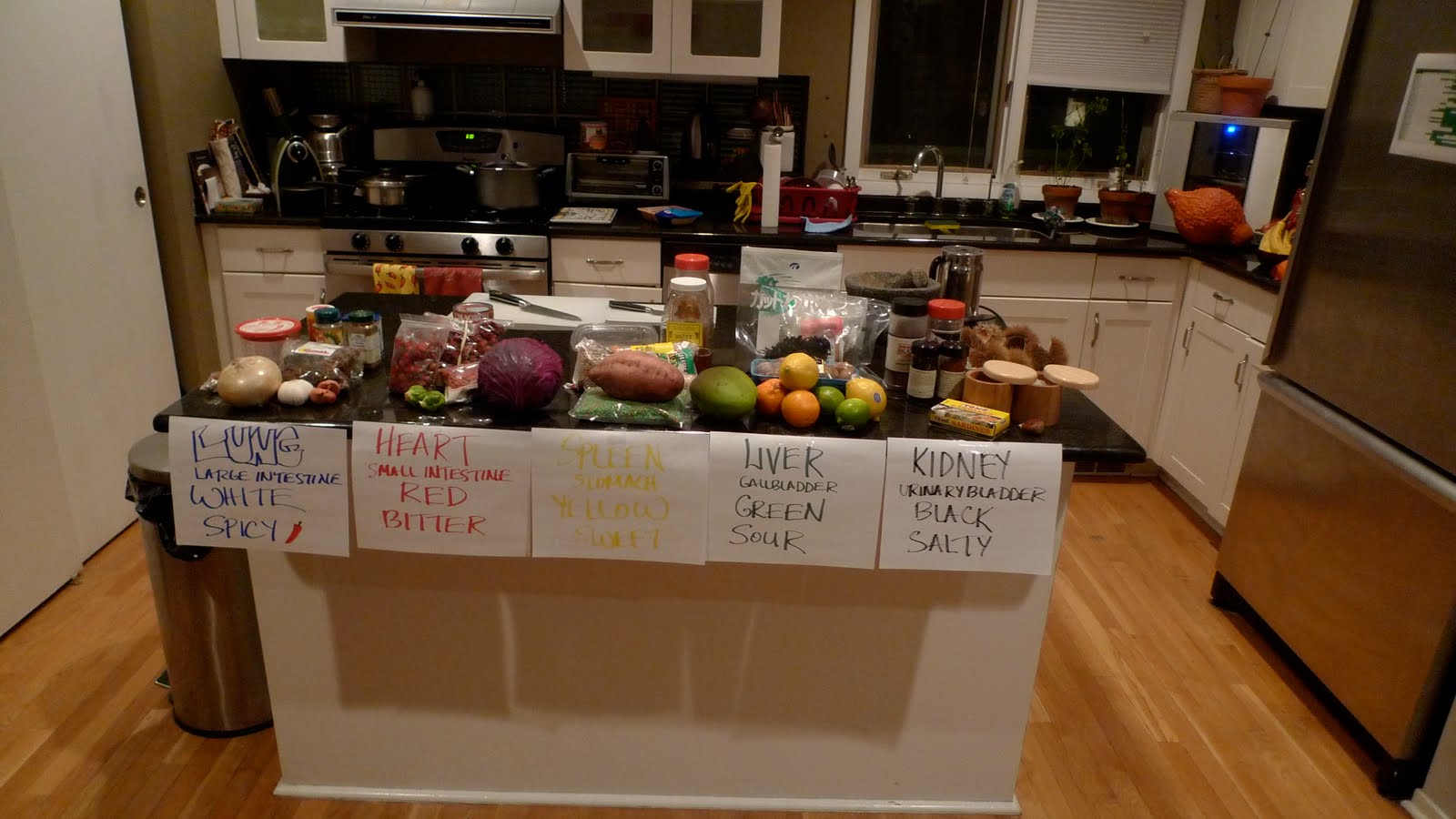 five element approach to food is always exciting to share: eating according to colors, flavors, and temperatures, and pairing that to symptoms, illnesses, and your constitution.